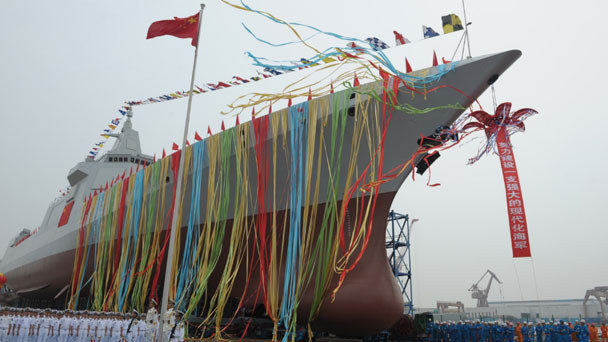 中國海軍新型驅逐艦首艦下水儀式28日上午在上海江南造船(集團)有限責任公司舉行。中央軍委委員、軍委裝備發展部部長張又俠出席下水儀式并致辭。