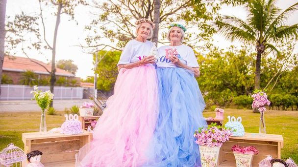 一對來自巴西圣靈州的雙胞胎姐妹為了慶祝即將到來的百歲生日,特地拍攝了一組粉嫩的照片作為紀念。