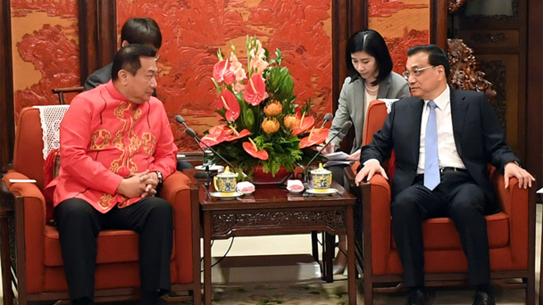 5月19日,國務院總理李克強在北京中南海紫光閣會見菲律賓眾議長阿爾瓦雷茲。新華社記者 張鐸 攝
