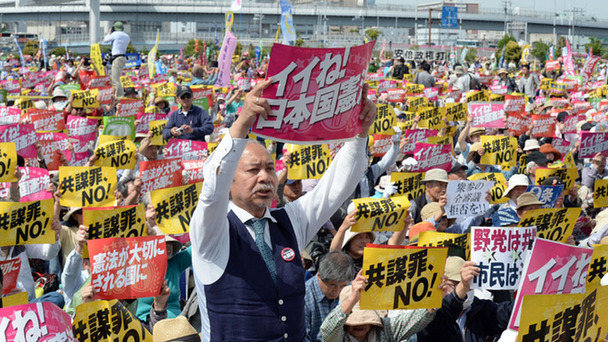 當?shù)貢r間5月3日,數(shù)萬日本民眾在東京舉行集會,紀念“和平憲法”頒布70周年,抗議安倍政府的修憲企圖。
