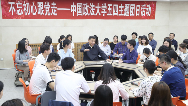 5月3日,中共中央總書記、國家主席、中央軍委主席習近平來到中國政法大學考察。這是習近平在學生活動中心參加民商經(jīng)濟法學院本科二年級2班團支部開展的“不忘初心跟黨走”主題團日活動。
