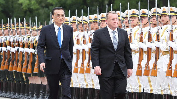 5月3日,國務院總理李克強在北京人民大會堂同來華進行正式訪問的丹麥首相拉斯穆森舉行會談。會談前,李克強在人民大會堂東門外廣場為拉斯穆森舉行歡迎儀式。