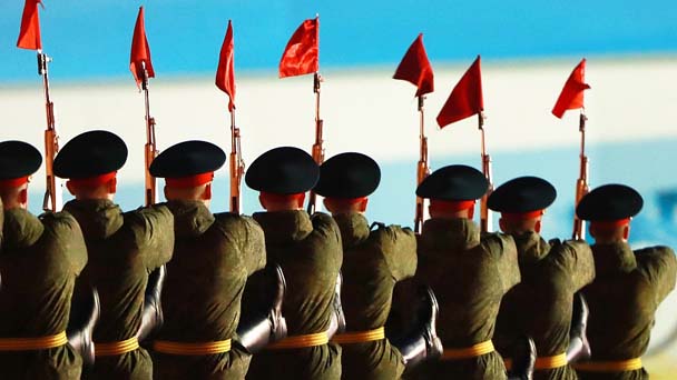 當?shù)貢r間2017年5月3日,俄羅斯士兵在莫斯科紅場進行閱兵彩排,為5月9日的勝利日大閱兵做準備。