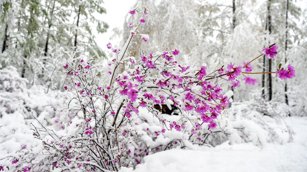 立夏時節(jié),內(nèi)蒙古呼倫貝爾的畢拉河林業(yè)局達爾濱湖國家森林公園迎來降雪,雪花掛在微微泛綠的枝頭上,美不勝收。