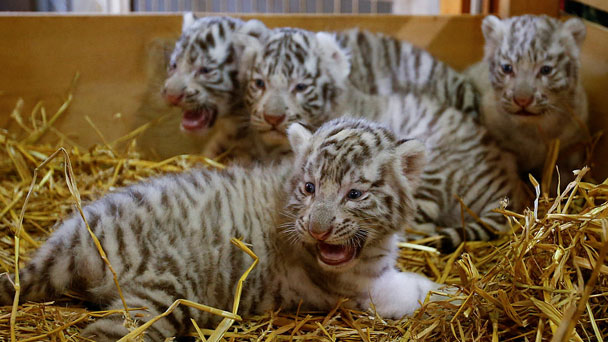 當(dāng)?shù)貢r(shí)間4月26日,四只萌萌的孟加拉虎幼崽亮相奧地利凱恩霍夫的白色動(dòng)物園( White Zoo)。據(jù)悉,它們是今年3月22日出生的。四只剛滿月不久的小家伙縮在一起,動(dòng)作憨態(tài)可掬,十分可愛。