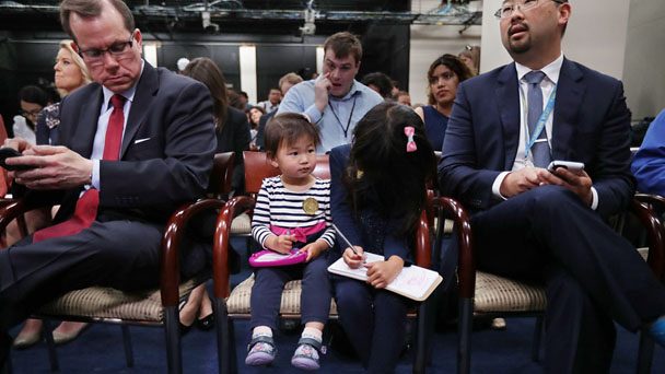 當(dāng)?shù)貢r(shí)間4月27日,白宮舉行一年一度的“帶孩子上班日”活動(dòng),參加活動(dòng)的小朋友們可以在白宮參觀、向白宮發(fā)言人提問并和總統(tǒng)特朗普合影。