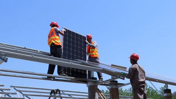 4月29日是五一勞動(dòng)節(jié)假期的第一天,在安徽省臨泉縣呂寨鎮(zhèn)谷河岸邊一個(gè)近600畝的光伏扶貧項(xiàng)目工地上,工人們正在緊張施工。