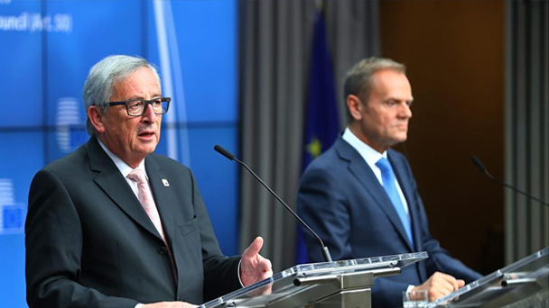 4月29日,在比利時(shí)首都布魯塞爾的歐盟總部,歐盟委員會(huì)主席容克(左)和歐洲理事會(huì)主席圖斯克在會(huì)議閉幕后出席新聞發(fā)布會(huì)。新華社記者龔兵攝 4月29日,在比利時(shí)首都布魯塞爾的歐盟總部,歐盟委員會(huì)主席容克(左)和歐洲理事會(huì)主席圖斯克在會(huì)議閉幕后出席新聞發(fā)布會(huì)。