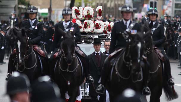 據英國廣播公司網站報道,當地時間4月10日,英國恐襲事件中殉職警察基思·帕爾默的葬禮在倫敦中心南華克大教堂舉行。