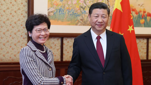 4月11日,國家主席習近平在中南海會見新當選并獲中央政府任命的香港特別行政區第五任行政長官林鄭月娥。