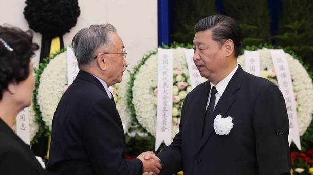 3月28日,萬國權同志遺體在北京八寶山革命公墓火化。習近平、張德江、俞正聲、劉云山、王岐山、張高麗、胡錦濤等前往八寶山送別。這是習近平與萬國權親屬握手,表示深切慰問。