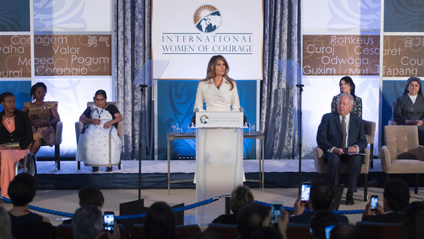 當地時間3月29日,美國第一夫人梅拉尼婭·特朗普在首都華盛頓出席2017年“國際婦女勇氣獎”的頒獎典禮。