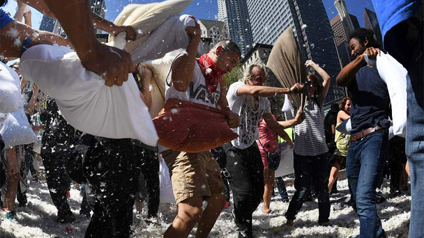 4月2日,人們又迎來了一年一度的“國際枕頭大戰日”,許多地方的“枕頭大戰”愛好者會相約走上街頭,用掄起枕頭“互毆”的獨特方式來緩解緊張的生活節奏、釋放壓力、放松身心。