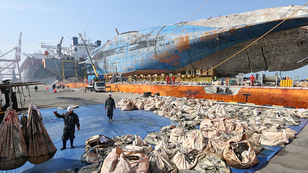 據韓聯社4月3日報道,韓國海洋水產部當天表示,在進行“世越”號沉船船體內部清污作業時發現了48件遇難者的遺物和1塊動物尸骨。