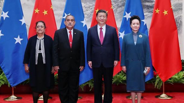 3月27日,國家主席習近平在北京人民大會堂同密克羅尼西亞聯邦總統克里斯琴舉行會談。
