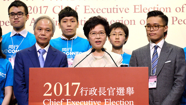 3月26日,林鄭月娥當選香港特區第五任行政長官人選后會見媒體。
