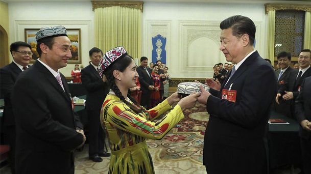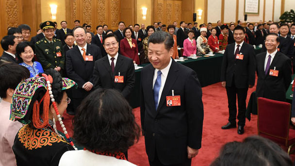3月8日,中共中央總書記、國家主席、中央軍委主席習近平參加十二屆全國人大五次會議四川代表團的審議。