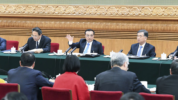 3月10日,中共中央政治局常委、國務院總理李克強參加十二屆全國人大五次會議安徽代表團的審議。新華社記者 張領 攝