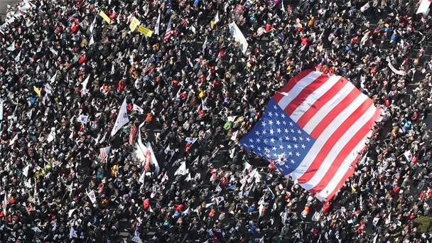 韓國被停職總統樸槿惠的支持者2月18日在韓國首爾街頭集會示威,要求撤銷總統彈劾。