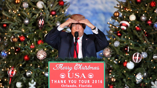 美國(guó)當(dāng)選總統(tǒng)特朗普12月16日攜候任副總統(tǒng)彭斯在奧蘭多舉行圣誕主題答謝集會(huì)。