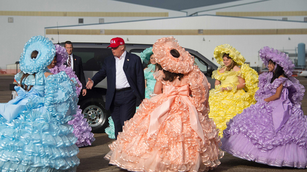 美國(guó)候任總統(tǒng)特朗普抵達(dá)美國(guó)阿拉巴馬州的木比耳出席當(dāng)?shù)氐拇鹬x集會(huì),受到“杜鵑小徑女傭”的歡迎。
