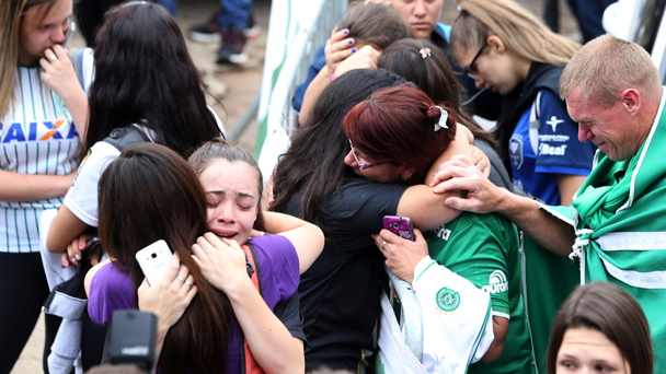 當(dāng)?shù)貢r(shí)間2016年11月29日,巴西足球俱樂(lè)部沙佩科恩斯隊(duì)遭遇空難。30日,大批球迷集結(jié)俱樂(lè)部球場(chǎng)悼念,不少人甚至相擁痛哭。
