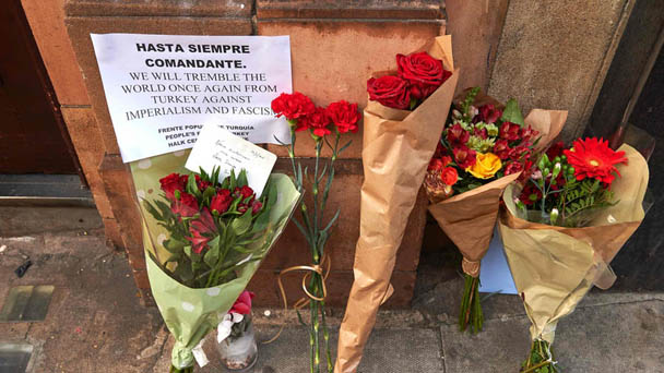 當地時間2016年11月26日,英國倫敦民眾在古巴駐英國大使館前獻花,悼念古巴革命領袖菲德爾·卡斯特羅逝世。