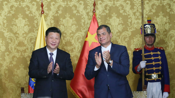 當地時間11月17日,國家主席習近平在基多同厄瓜多爾總統科雷亞舉行會談。
