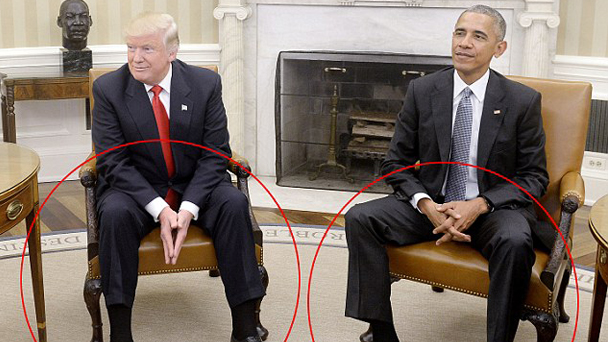 當(dāng)?shù)貢r間11月10日,美國侯任總統(tǒng)唐納德·特朗普在白宮橢圓形辦公室與現(xiàn)任總統(tǒng)奧巴馬進行了一個多小時的商談,隨后兩人共同會見記者。有肢體語言專家通過對二人肢體動作的分析指出,奧巴馬已處于極度疲憊的狀態(tài),而特朗普則有隱隱的恐懼。