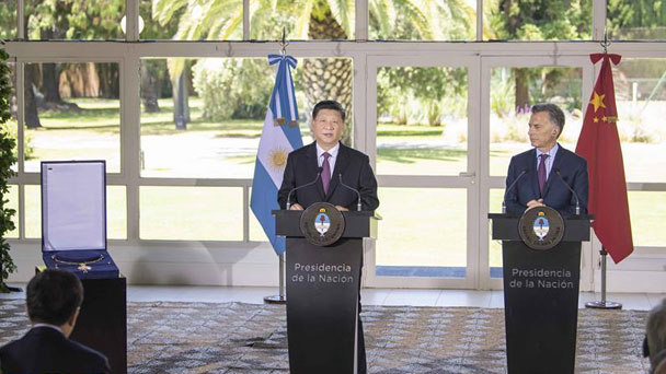 當地時間12月2日,國家主席習近平同阿根廷總統馬克里在布宜諾斯艾利斯舉行會談。當地時間12月2日,國家主席習近平同阿根廷總統馬克里在布宜諾斯艾利斯舉行會談。