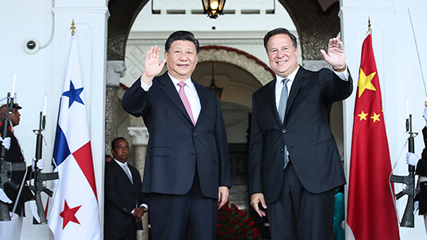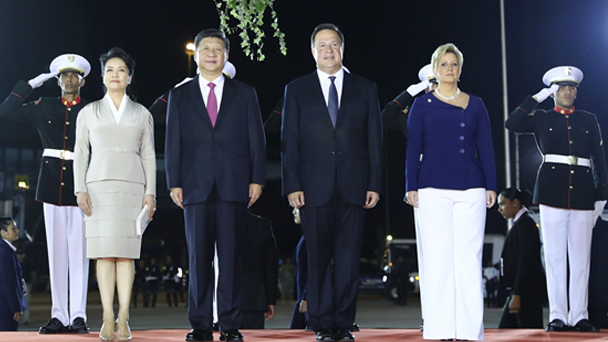 當地時間12月2日,國家主席習近平抵達巴拿馬城,開始對巴拿馬共和國進行國事訪問。巴拿馬總統巴雷拉和夫人卡斯蒂略在舷梯旁熱情迎接習近平和夫人彭麗媛。