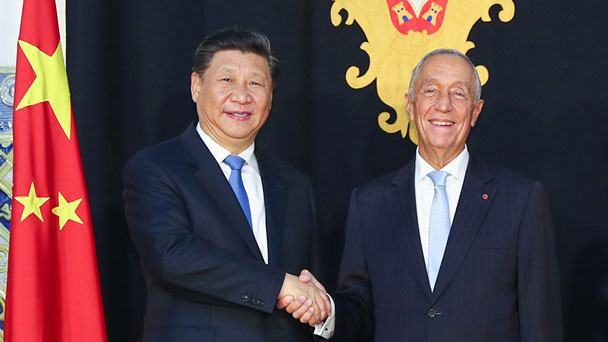 當地時間12月4日,國家主席習近平在里斯本同葡萄牙總統德索薩舉行會談。會談前,德索薩總統在帝國廣場為習近平舉行隆重歡迎儀式。當晚,習近平和彭麗媛與德索薩共同參觀了“海上絲綢之路”故宮精品文物展。