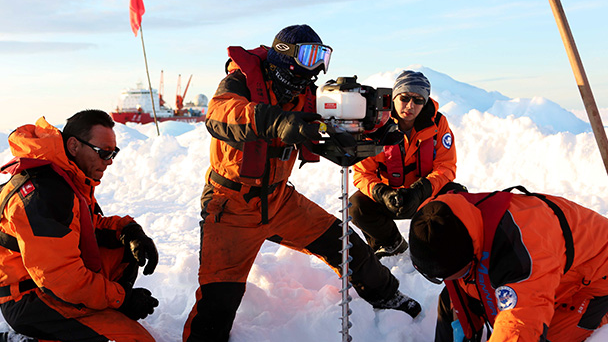 一支探冰小組隨即展開海冰探路,以期盡快打通從“雪龍”號到中山站的冰上運輸線,盡早啟動冰上運貨。