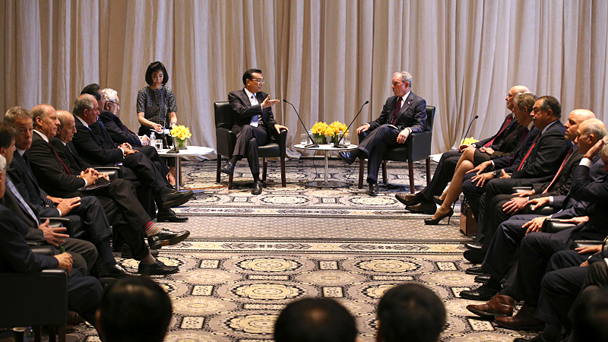國(guó)務(wù)院總理李克強(qiáng)當(dāng)?shù)貢r(shí)間20日上午在紐約下榻飯店同美國(guó)經(jīng)濟(jì)、金融、智庫(kù)、媒體等各界人士座談,就中美關(guān)系及經(jīng)貿(mào)合作等共同關(guān)心的問(wèn)題交流互動(dòng)。