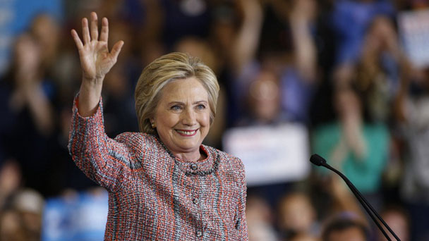 當地時間9月15日,因患肺炎被迫在家休息數天后,美國民主黨總統候選人希拉里·克林頓現身北卡羅來納州格林斯博羅,參加本周首場競選活動。