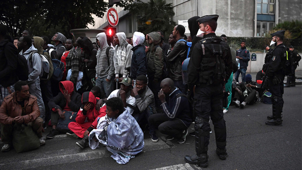 9月16日,法國巴黎巴黎政府拆除一處位于巴黎地鐵饒勒斯站和斯大林格勒站之間的臨時移民營,大批移民聚集在一起等待撤離。