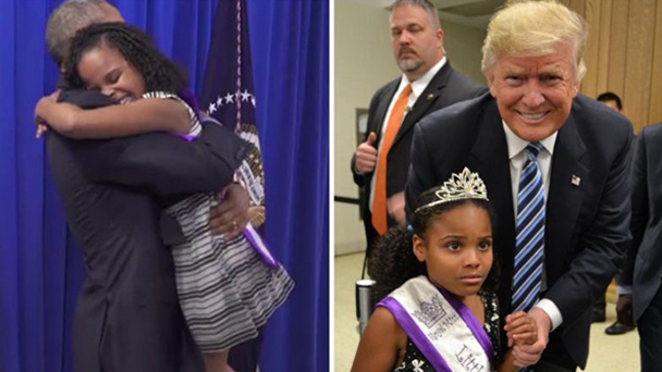 美國大選走到現在,各種謠言、口水戰,和意想不到的事情天天都在上演。最近網上瘋傳一位小女孩分別與奧巴馬和特朗普的反差合照,讓討厭特朗普的人又樂了。