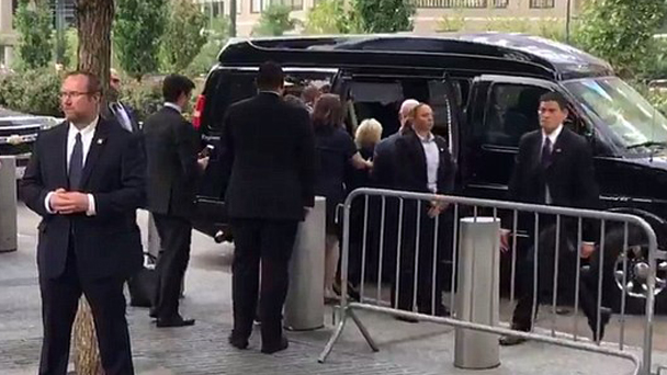 美國民主黨總統候選人希拉里被確診患上肺炎。有視頻顯示,希拉里出席9·11事件15周年紀念活動時提前離場,在等車時失去平衡,差點倒在特勤處特工懷里,隨后被工作人員架上車。