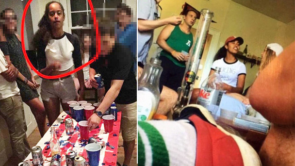 英國《每日郵報》9月12日公布了一張美國總統奧巴馬長女瑪利亞8月份在馬里蘭州和一幫朋友開派對的照片。她穿著露臍棒球衫、牛仔短褲,桌子上擺滿了各種啤酒和塑料杯子。