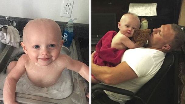 美國西弗吉尼亞州警察在一位酒駕司機的車后座發現了一位全身沾滿了嘔吐物的寶寶。警察拘捕了這位酒駕的媽媽后,將寶寶帶回了警察局總部,在廚房的洗碗槽里給他好好洗了個澡。