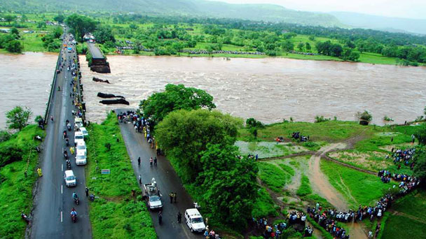 印度警方8月3日稱,印度西部城市孟買至果阿邦的高速公路上一座跨越瑟維德里河的橋梁2日深夜發生坍塌,兩輛巴士被河水沖走,估計有22人失蹤。目前,印度正值暴雨之季。坍塌很有可能是持續暴雨及不斷上漲的河水所致。