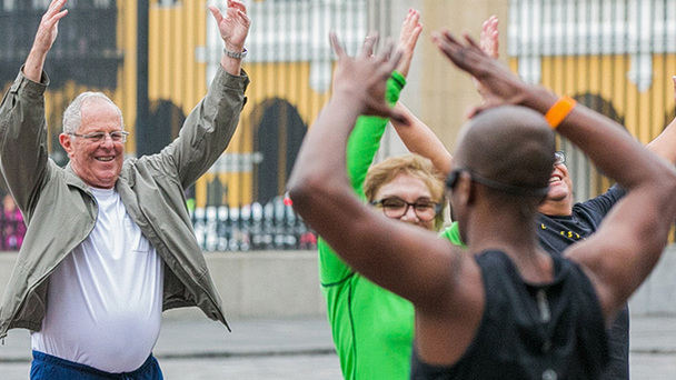 2016年8月4日,秘魯總統佩德羅·巴勃羅·庫琴斯基與大臣們在市政廳前集體運動。