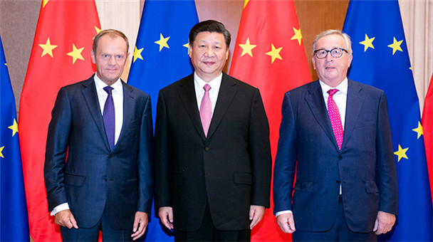 7月16日,國家主席習近平在北京釣魚臺國賓館會見來華出席第二十次中國歐盟領導人會晤的歐洲理事會主席圖斯克和歐盟委員會主席容克。