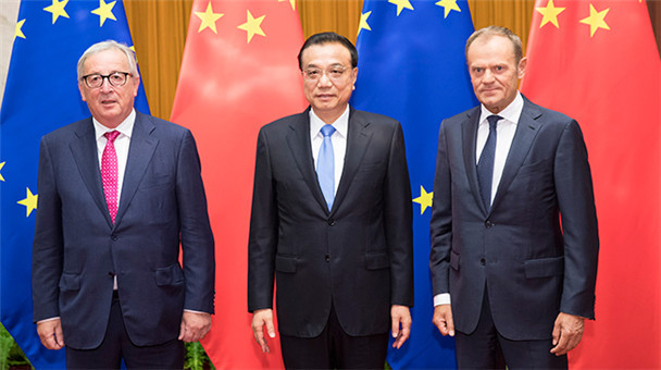 國務院總理李克強7月16日上午在人民大會堂同歐洲理事會主席圖斯克、歐盟委員會主席容克共同主持第二十次中國歐盟領導人會晤。