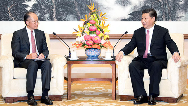 7月16日,國家主席習近平在北京釣魚臺國賓館會見世界銀行行長金墉。