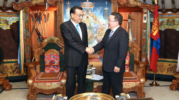 國務院總理李克強當地時間14日上午在烏蘭巴托國家宮會見蒙古國總統額勒貝格道爾吉。額勒貝格道爾吉表示,李克強總理到訪前在蒙古國主流媒體發表署名文章,在蒙各界產生很好反響。