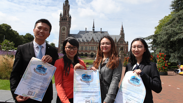 日前,在荷蘭烏特勒支大學攻讀國際公法博士學位的中國留學生彭芩萱和她的朋友們來到位于荷蘭海牙的和平宮前,呼吁南海仲裁案中的國際法正義。