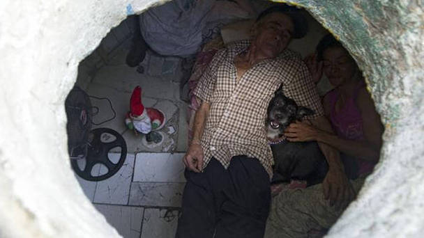 國際在線專稿:據西班牙獵奇網站報道,哥倫比亞麥德林市的一對夫婦米蓋爾和瑪利亞22年都生活在一處僅有6平方米的下水道中。