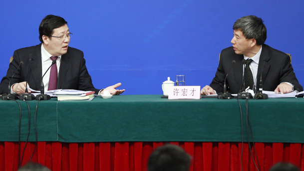 2016年3月7日,十二屆全國人大四次會議新聞中心舉行記者會,財政部部長樓繼偉、部長助理許宏才就“財政工作和財稅改革”的相關問題回答中外記者的提問。圖為財政部部長樓繼偉出席發布會。