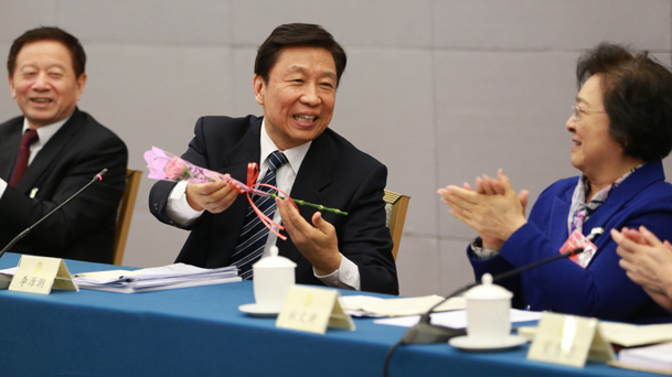 2016年3月8日,全國政協十二屆四次會議婦聯界別舉行聯組會議,中共中央政治局委員、國家副主席李源潮參加聯組會議討論,并祝女委員們節日快樂。